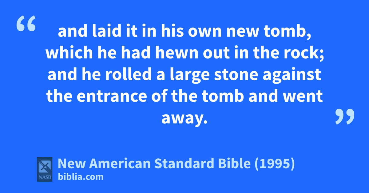 60 and laid it in his own new tomb, which he had hewn out in the rock; and he rolled aa large stone against the entrance of the tomb and went away.