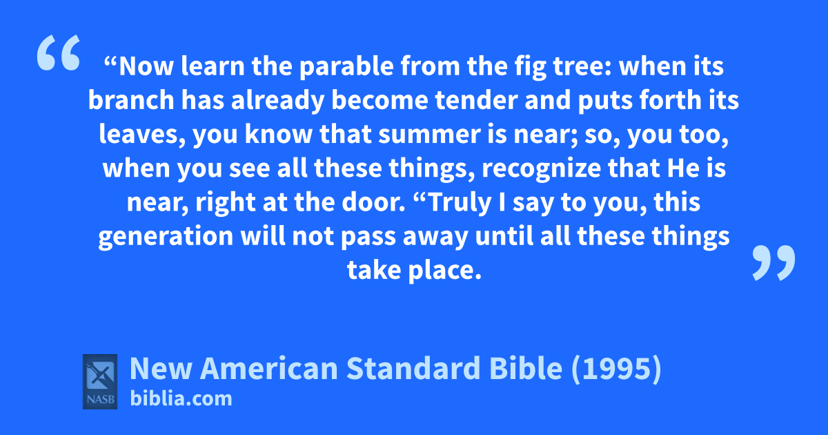 32 “Now learn the parable from the fig tree: when its branch has already become tender and puts forth its leaves, you know that summer is near;
