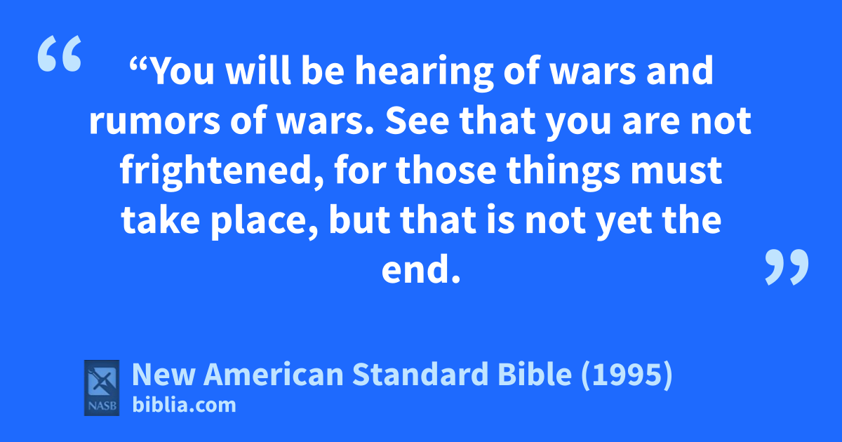 6 “You will be hearing of awars and rumors of wars. See that you are not frightened, for those things must take place, but that is not yet the end.
