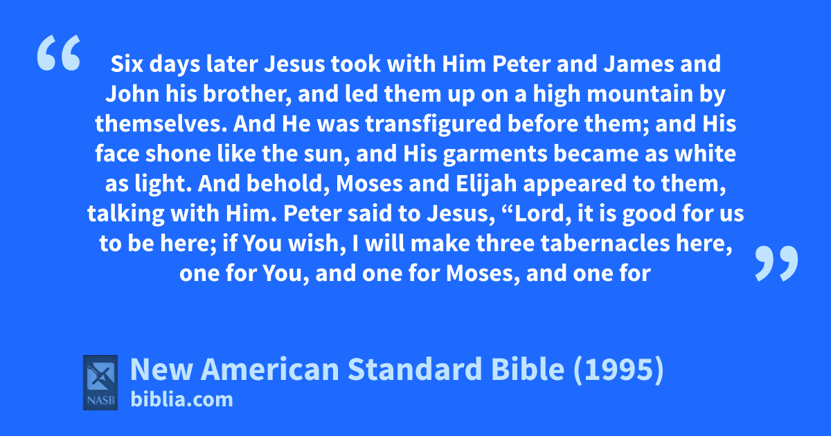 4 Peter said to Jesus, “Lord, it is good for us to be here; if You wish, aI will make three 1tabernacles here, one for You, and one for Moses, and one for Elijah.”