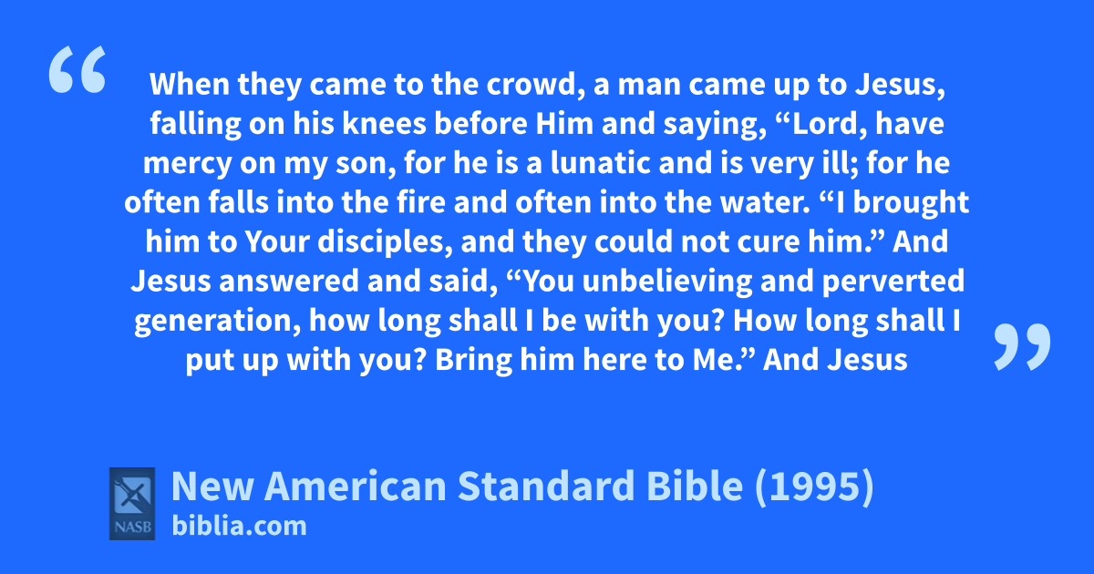 17 And Jesus answered and said, “You unbelieving and perverted generation, how long shall I be with you? How long shall I put up with you? Bring him here to Me.”