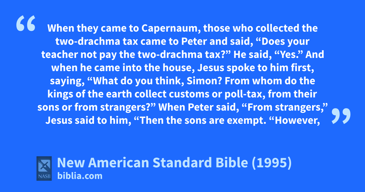 24 When they came to Capernaum, those who collected athe 1two-drachma tax came to Peter and said, “Does your teacher not pay athe 1two-drachma tax?”