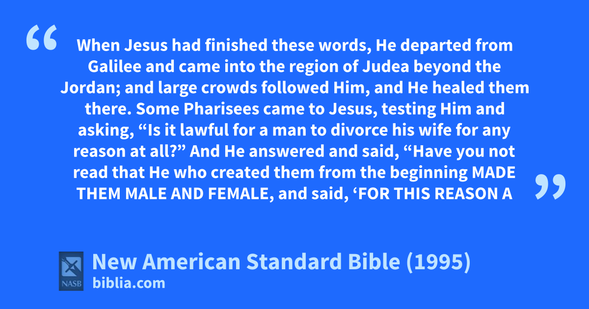 1 aWhen Jesus had finished these words, He departed from Galilee and bcame into the region of Judea beyond the Jordan;