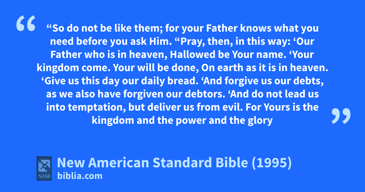 13 ‘And do not lead us into temptation, but adeliver us from 1bevil. 2[For Yours is the kingdom and the power and the glory forever. Amen.]’