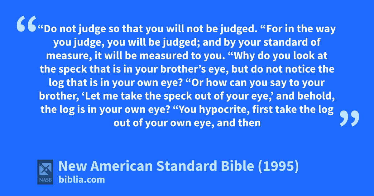 4 “aOr how 1can you say to your brother, ‘Let me take the speck out of your eye,’ and behold, the log is in your own eye?