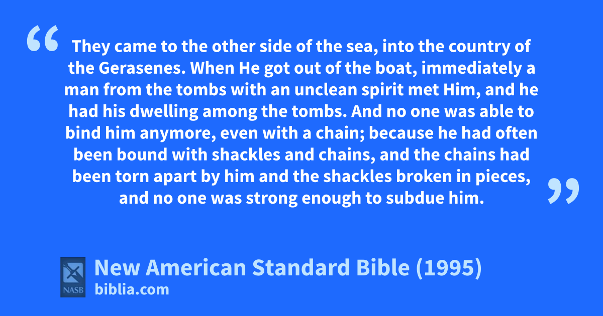 3 and he had his dwelling among the tombs. And no one was able to bind him anymore, even with a chain;