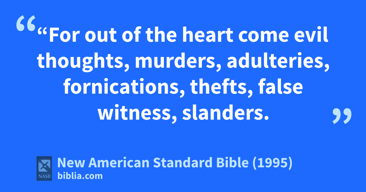 19 “aFor out of the heart come evil thoughts, murders, adulteries, 1fornications, thefts, false witness, slanders.