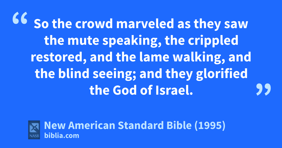 31 So the crowd marveled as they saw the mute speaking, the crippled 1restored, and the lame walking, and the blind seeing; and they aglorified the God of Israel.