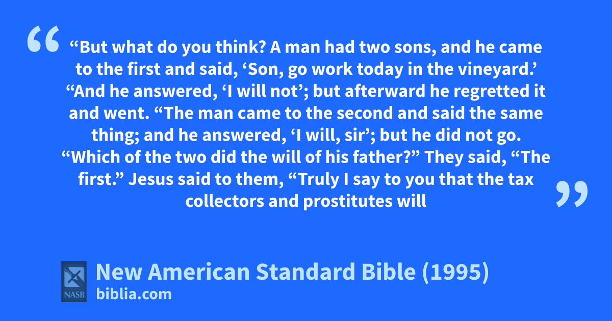 28 “But what do you think? A man had two 1sons, and he came to the first and said, ‘2Son, go work today in the avineyard.’