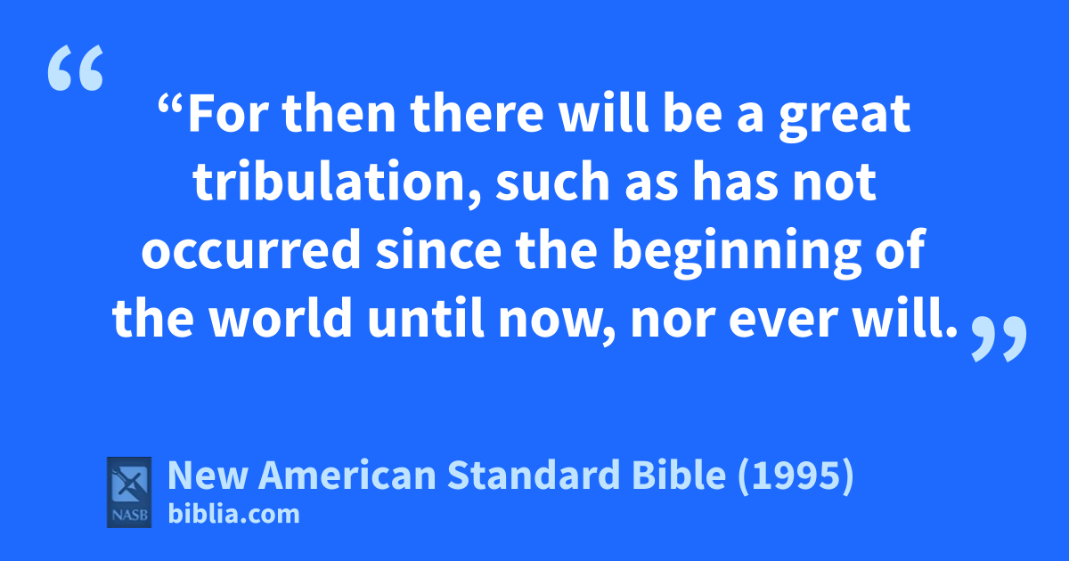 21 “For then there will be a agreat tribulation, such as has not occurred since the beginning of the world until now, nor ever will.