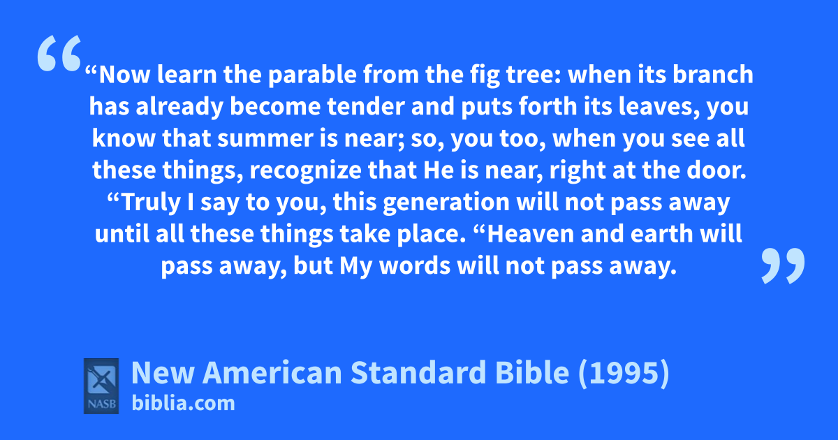 32 “Now learn the parable from the fig tree: when its branch has already become tender and puts forth its leaves, you know that summer is near;
