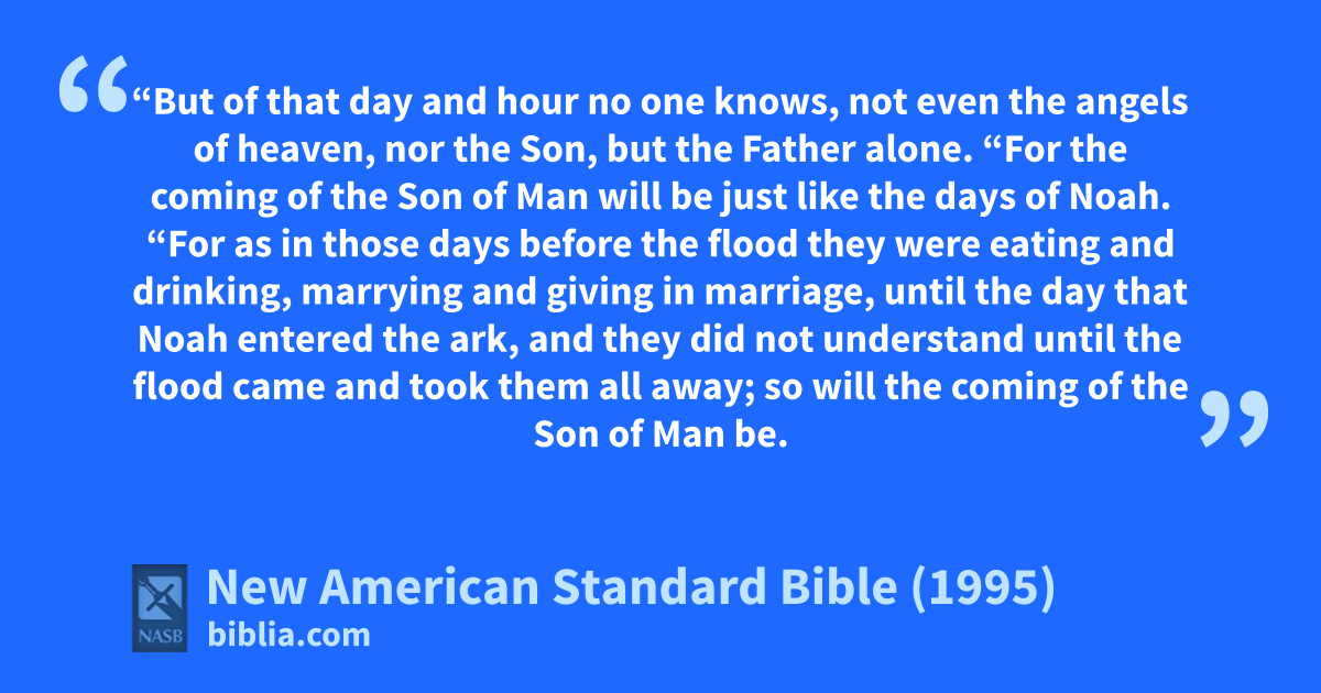 38 “For as in those days before the flood they were eating and drinking, amarrying and giving in marriage, until the day that bNoah entered the ark,