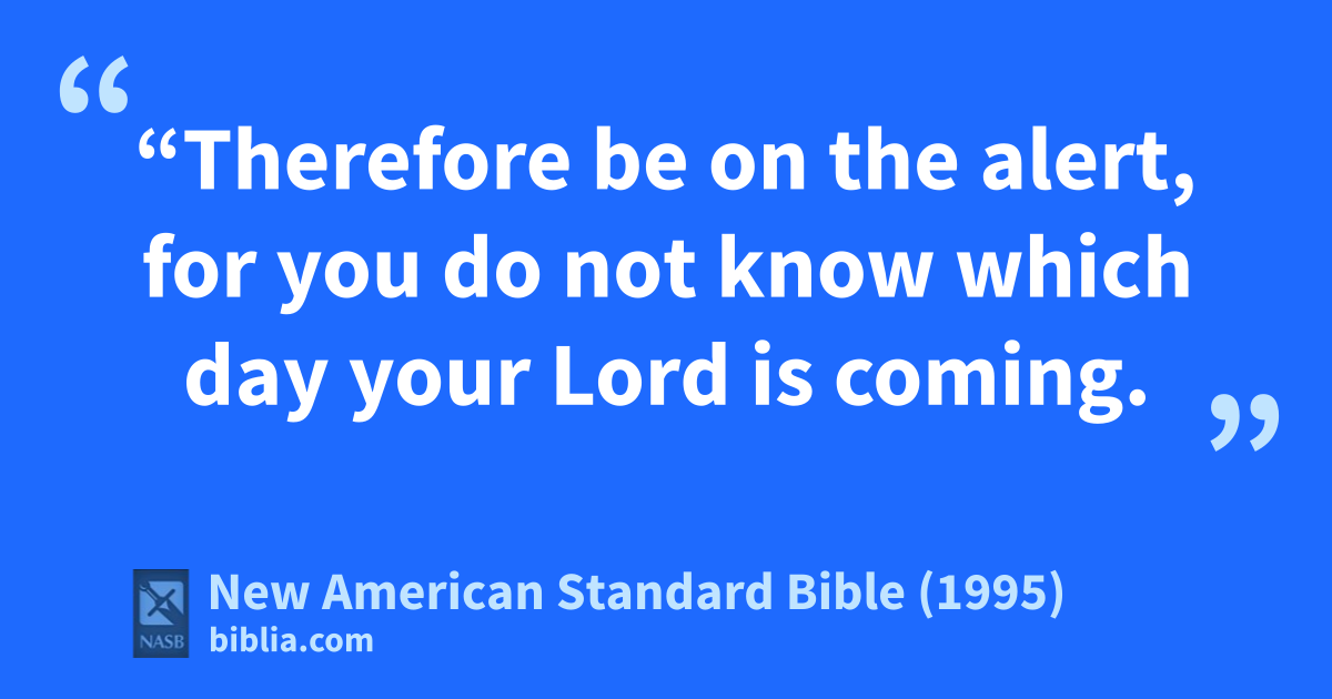 42 “Therefore abe on the alert, for you do not know which day your Lord is coming.