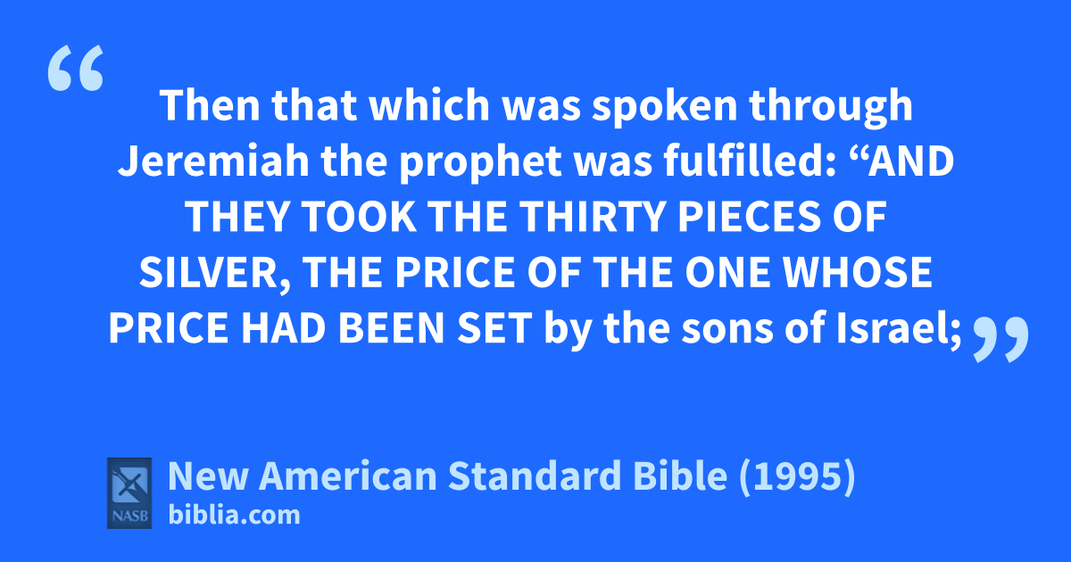 9 Then that which was spoken through Jeremiah the prophet was fulfilled: “aAnd 1they took the thirty pieces of silver, the price of the one whose price had been set by the sons of Israel;