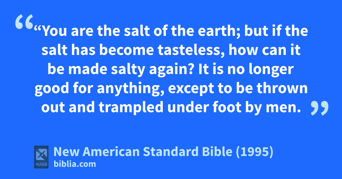 13 “You are the salt of the earth; but aif the salt has become tasteless, how 1can it be made salty again? It is no longer good for anything, except to be thrown out and trampled under foot by men.