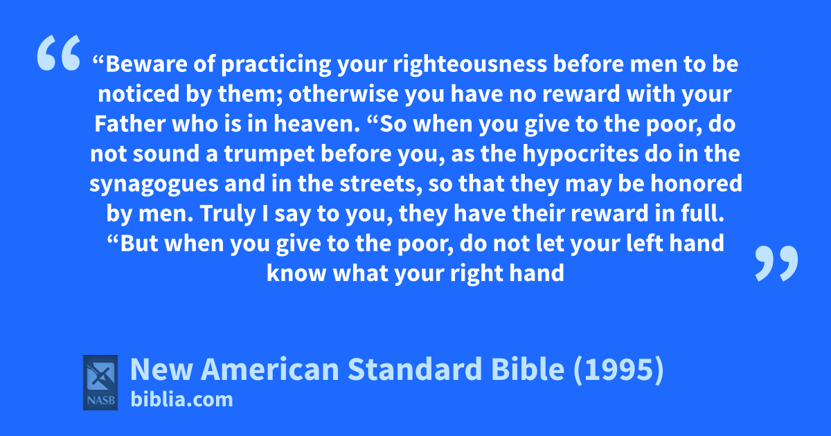 2 “So when you 1give to the poor, do not sound a trumpet before you, as the hypocrites do in the synagogues and in the streets, so that they amay be honored by men. bTruly I say to you, they have their reward in full.