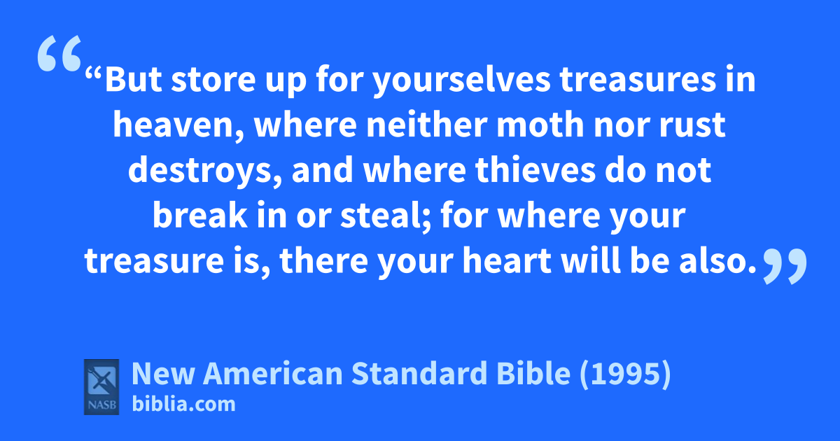 20 “But store up for yourselves atreasures in heaven, where neither moth nor rust destroys, and where thieves do not break in or steal;