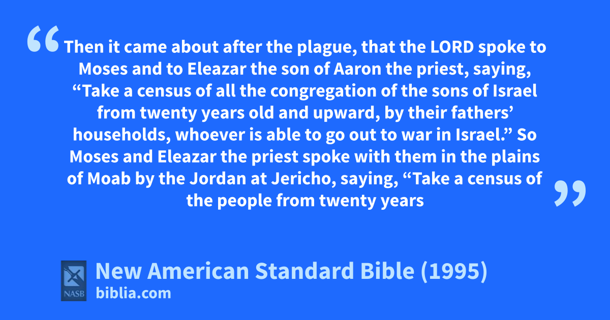 1 1Then it came about after the aplague, 2that the Lord spoke to Moses and to Eleazar the son of Aaron the priest, saying,