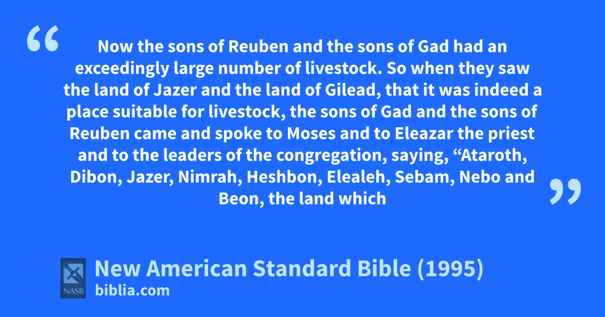 1 Now the sons of Reuben and the sons of Gad had an aexceedingly large number of livestock. So when they saw the land of bJazer and the land of Gilead, that 1it was indeed a place suitable for livestock,