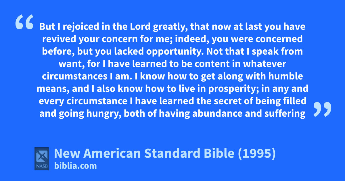 12 I know how to get along with humble means, and I also know how to live in prosperity; in any and every circumstance I have learned the secret of being filled and going ahungry, both of having abundance and bsuffering need.