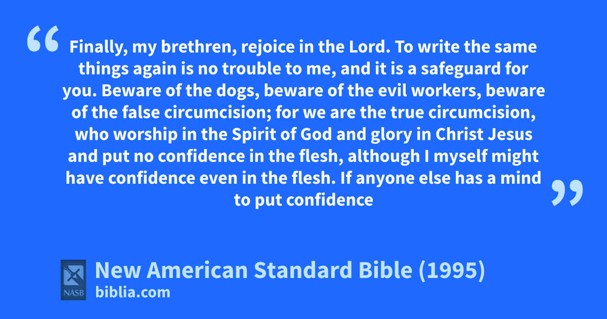1 Finally, my brethren, arejoice in the Lord. To write the same things again is no trouble to me, and it is a safeguard for you.