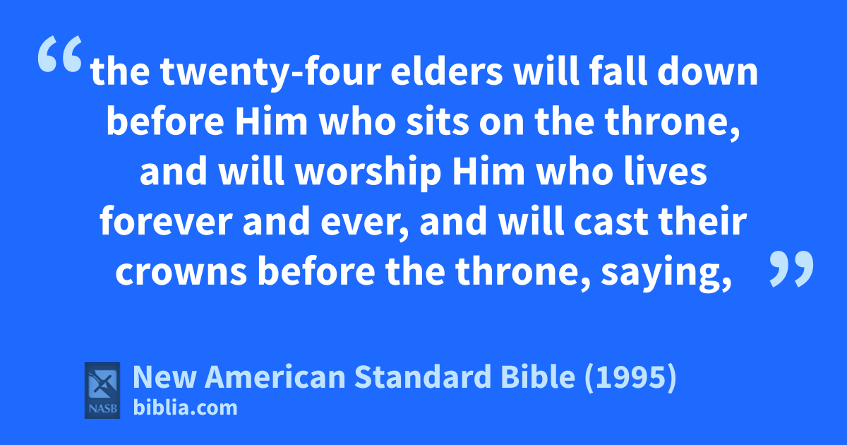 10 the atwenty-four elders will bfall down before Him who csits on the throne, and will worship dHim who lives forever and ever, and will cast their ecrowns before the throne, saying,