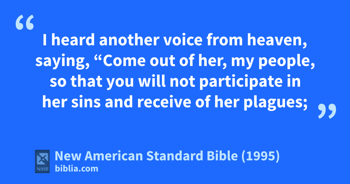 4 I heard another voice from heaven, saying, “aCome out of her, my people, so that you will not participate in her sins and receive of her plagues;