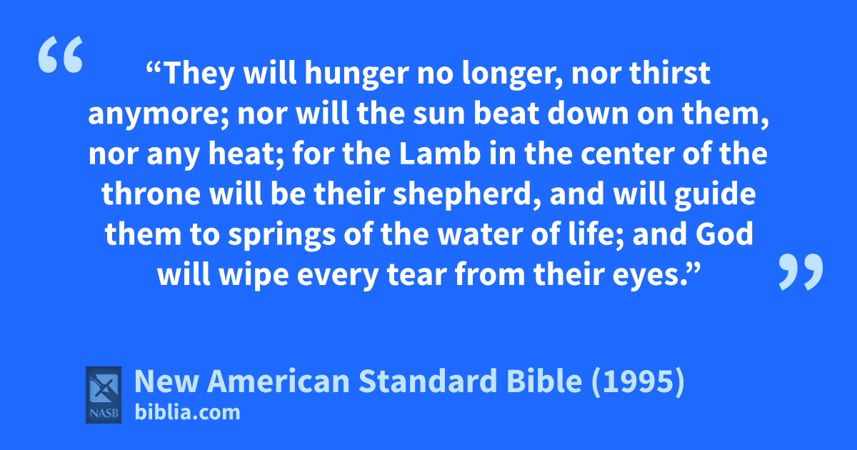 17 for the Lamb in the center of the throne will be their ashepherd, and will guide them to springs of the 1bwater of life; and cGod will wipe every tear from their eyes.”