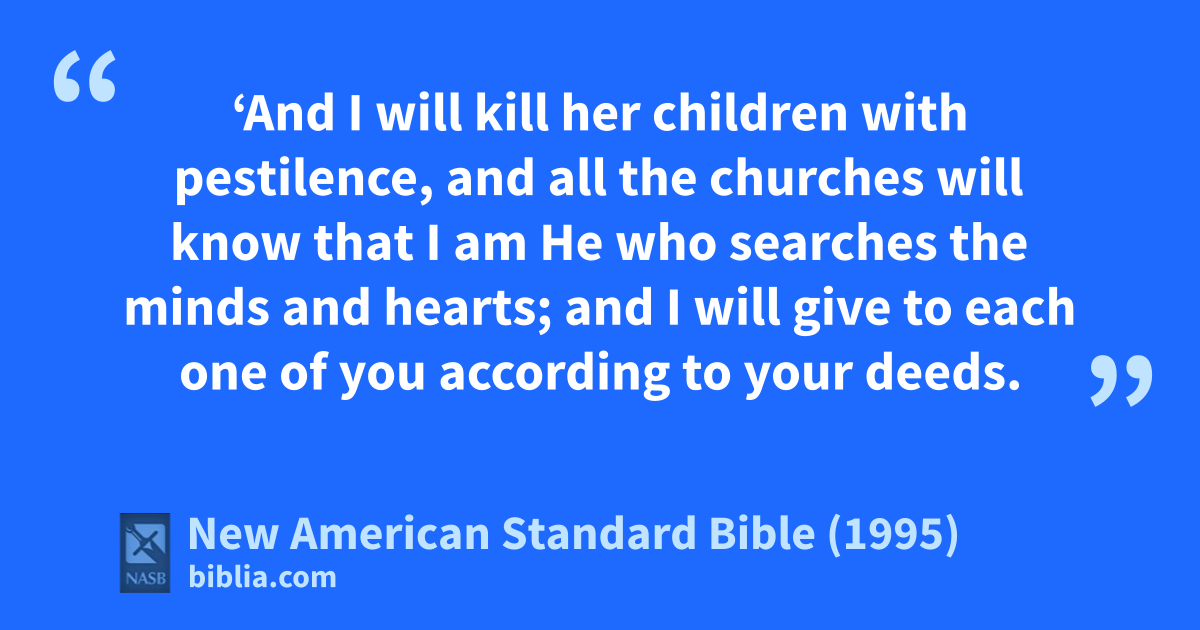 23 ‘And I will kill her children with 1pestilence, and all the churches will know that I am He who asearches the 2minds and hearts; and bI will give to each one of you according to your deeds.