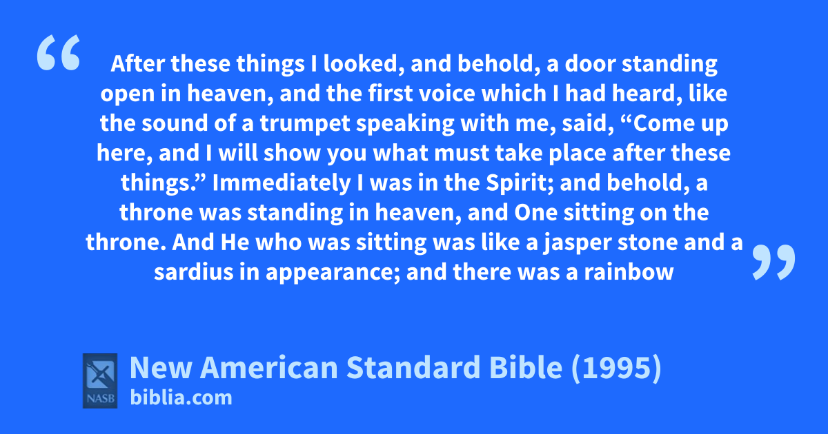 1 After athese things I looked, and behold, ba door standing open in heaven, and the first voice which I had heard, clike the sound of a trumpet speaking with me, said, “dCome up here, and I will eshow you what must take place after these things.”