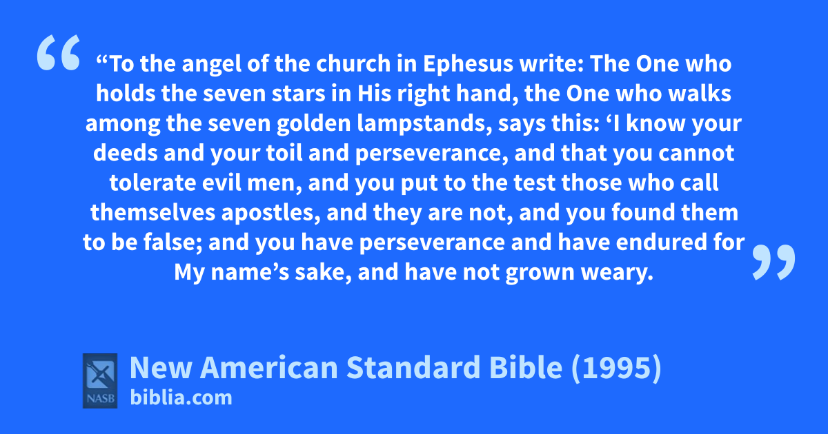 2 ‘aI know your deeds and your toil and 1perseverance, and that you cannot tolerate evil men, and you bput to the test those who call themselves capostles, and they are not, and you found them to be false;