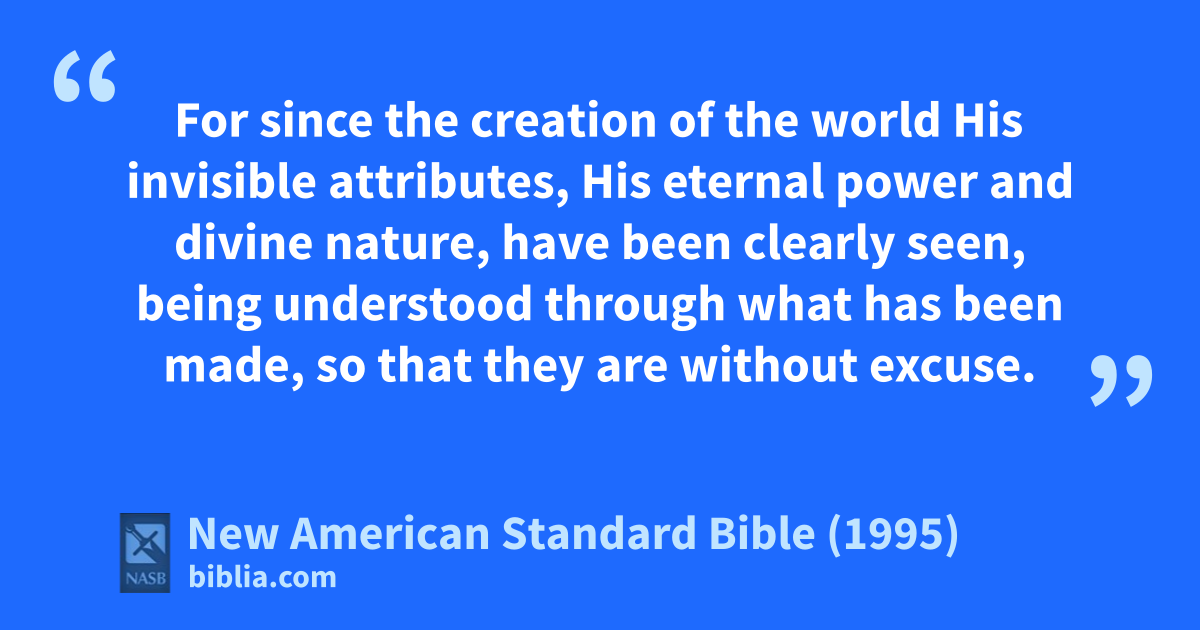 20 For asince the creation of the world His invisible attributes, His eternal power and divine nature, have been clearly seen, bbeing understood through what has been made, so that they are without excuse.
