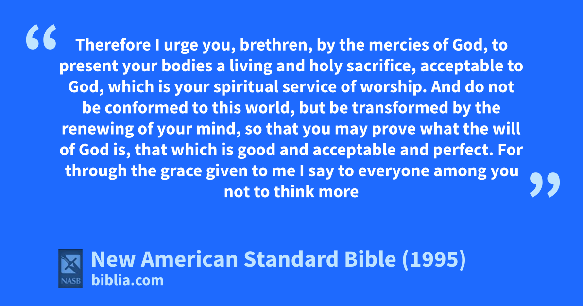 3 For through athe grace given to me I say to everyone among you bnot to think more highly of himself than he ought to think; but to think so as to have sound judgment, as God has allotted to ceach a measure of faith.
