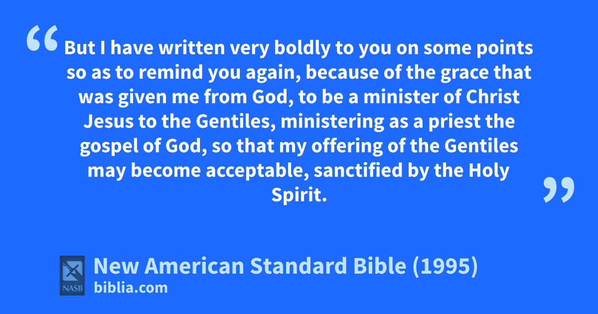16 to be aa minister of Christ Jesus to the Gentiles, ministering as a priest the bgospel of God, so that my coffering of the Gentiles may become acceptable, sanctified by the Holy Spirit.
