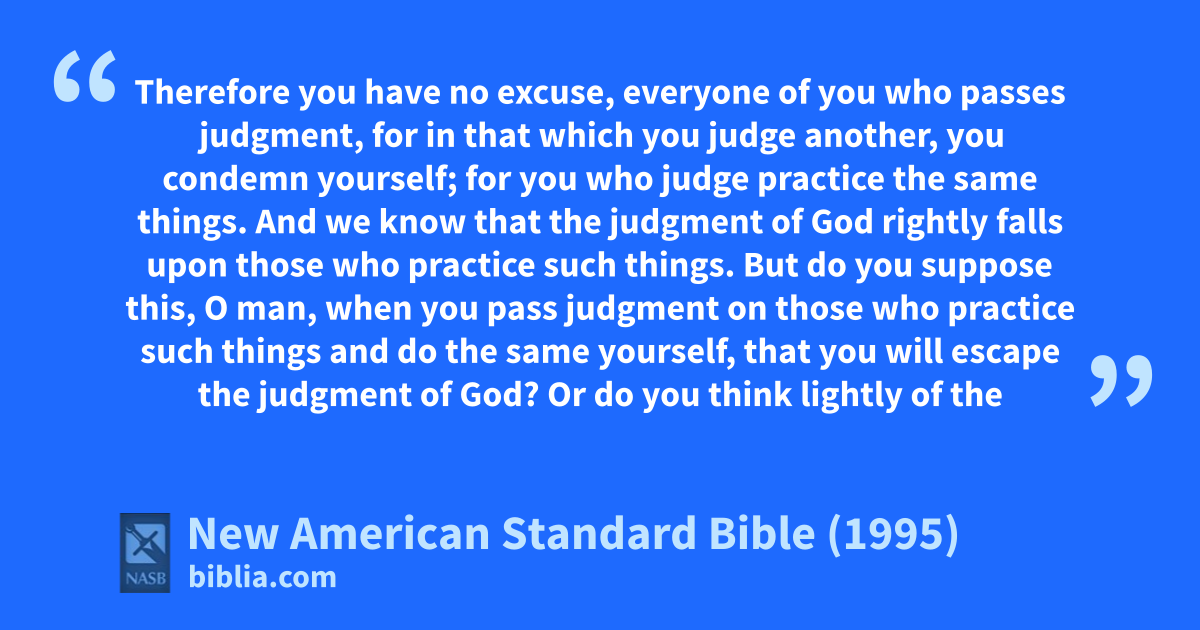 1 Therefore you have ano excuse, 1beveryone of you who passes judgment, for in that which cyou judge another, you condemn yourself; for you who judge practice the same things.