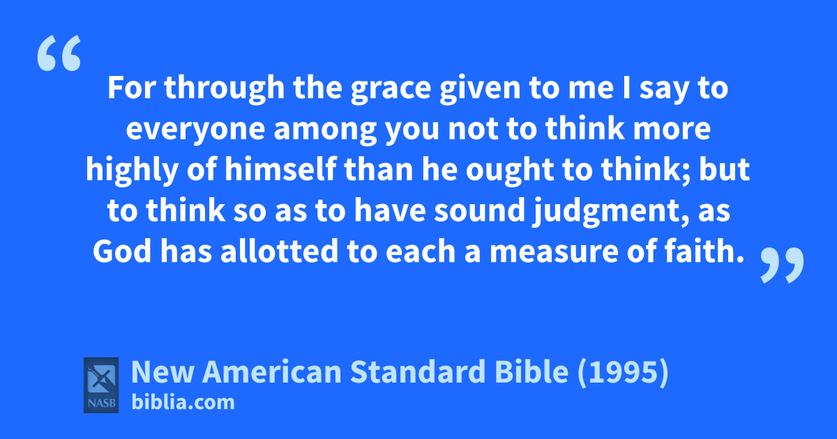 3 For through athe grace given to me I say to everyone among you bnot to think more highly of himself than he ought to think; but to think so as to have sound judgment, as God has allotted to ceach a measure of faith.