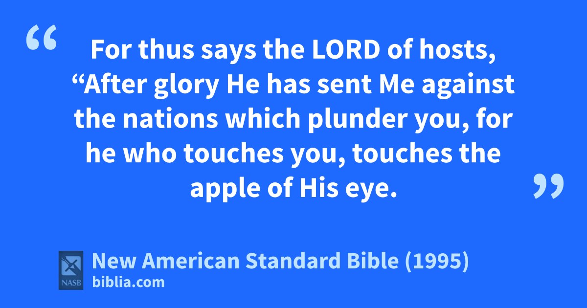 8 For thus says the Lord of hosts, “After 1aglory He has sent Me against the nations which plunder you, for he who touches you, touches the 2bapple of His eye.