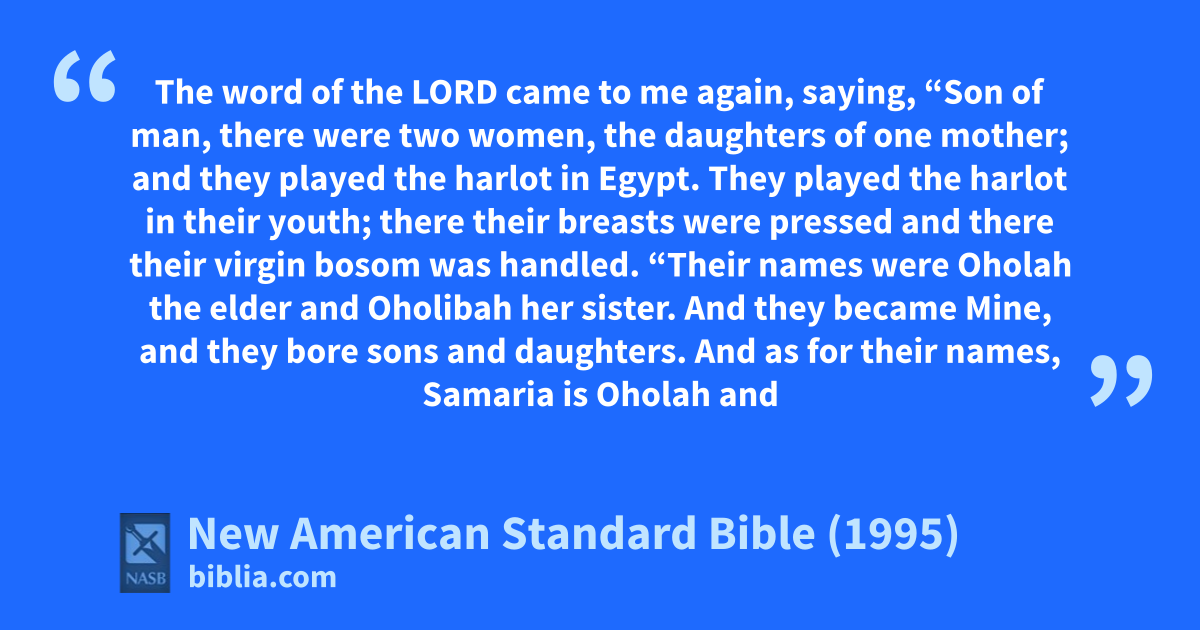 4 “Their names were Oholah the elder and Oholibah her sister. And they became Mine, and they bore sons and daughters. And as for their names, Samaria is Oholah and Jerusalem is Oholibah.