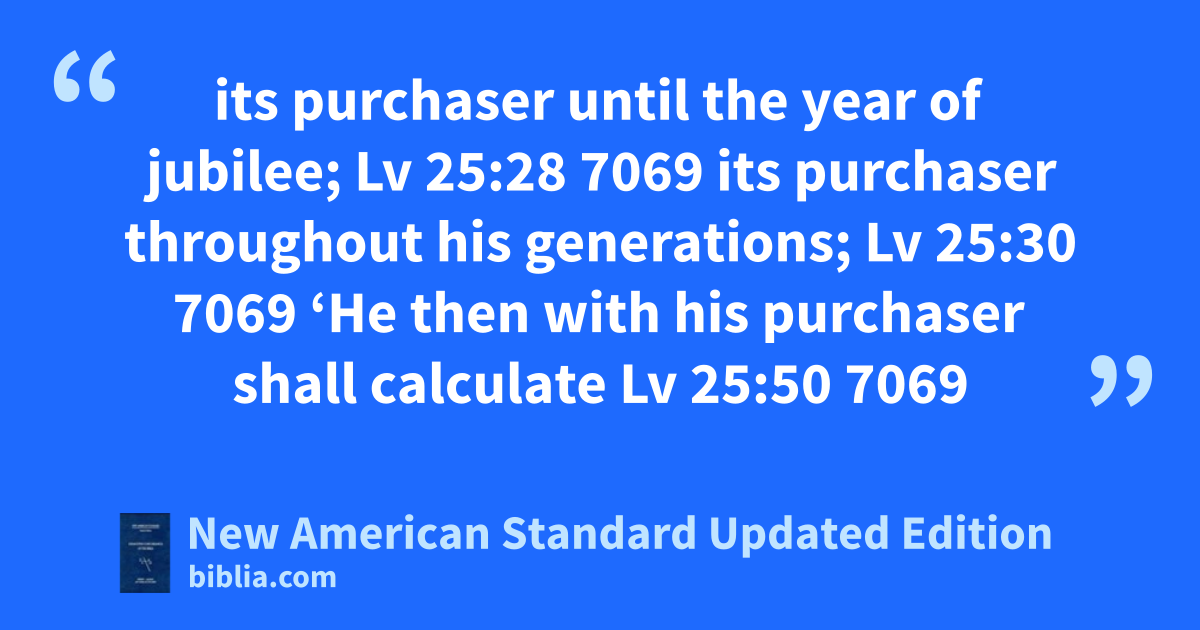 its purchaser until the year of jubilee; Lv 25:28 7069 its purchaser throughout his generations; Lv 25:30 7069 ‘He then with his purchaser shall calculate Lv 25:50 7069