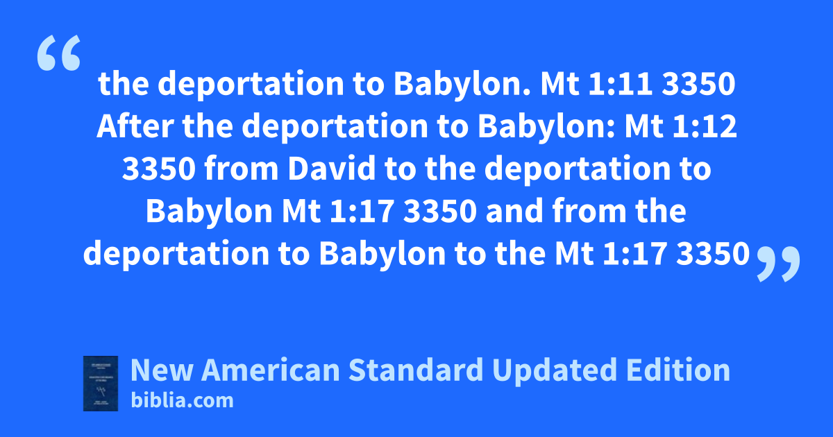 the deportation to Babylon. Mt 1:11 3350 After the deportation to Babylon: Mt 1:12 3350 from David to the deportation to Babylon Mt 1:17 3350 and from the deportation to Babylon to the Mt 1:17 3350