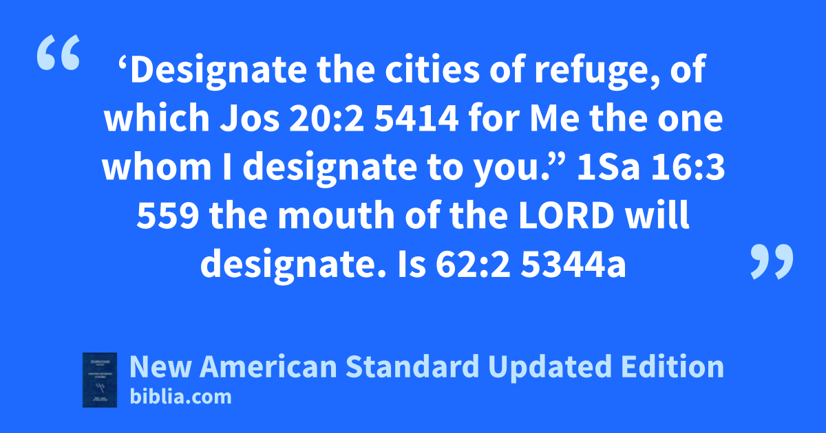 ‘Designate the cities of refuge, of which Jos 20:2 5414 for Me the one whom I designate to you.” 1Sa 16:3 559 the mouth of the LORD will designate. Is 62:2 5344a