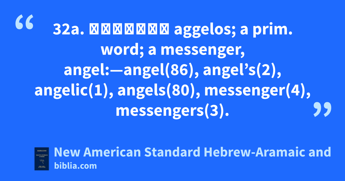 32a. ἄγγελος aggelos; a prim. word; a messenger, angel:—angel(86), angel’s(2), angelic(1), angels(80), messenger(4), messengers(3).