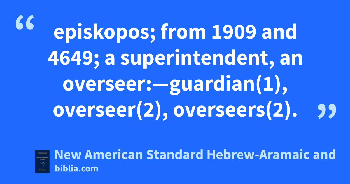 episkopos; from 1909 and 4649; a superintendent, an overseer:—guardian(1), overseer(2), overseers(2).