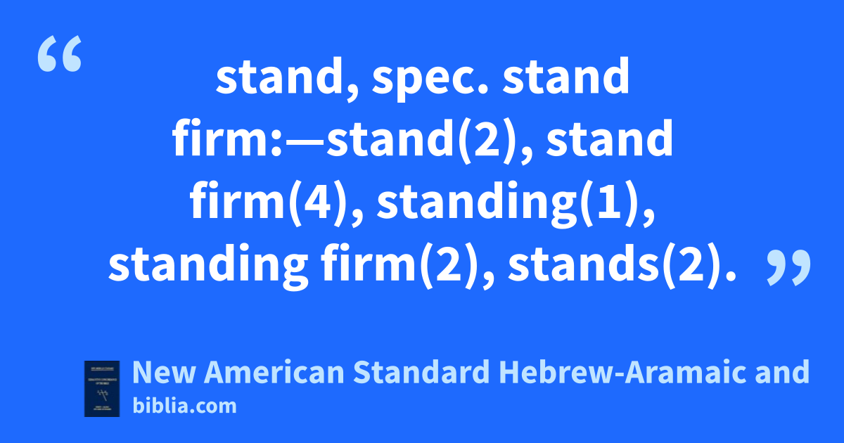 stand, spec. stand firm:—stand(2), stand firm(4), standing(1), standing firm(2), stands(2).