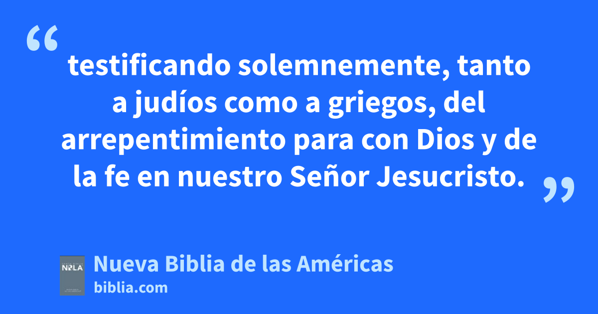 21 testificandoa solemnemente, tanto a judíos como a griegos, del arrepentimientob para con Dios y de la fe en nuestro Señor Jesucristoc.