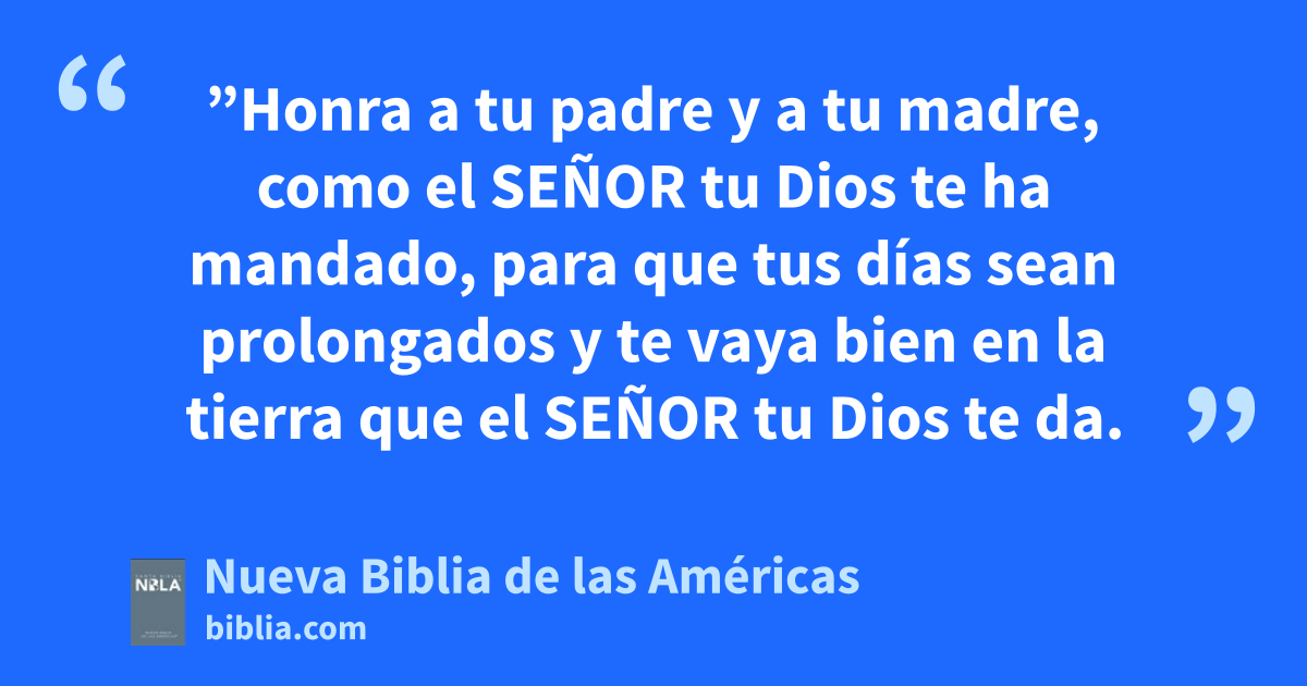 16 ”Honra a tu padre y a tu madrea, como el Señor tu Dios te ha mandado, para que tus días sean prolongados y te vaya bien en la tierra que el Señor tu Dios te dab.