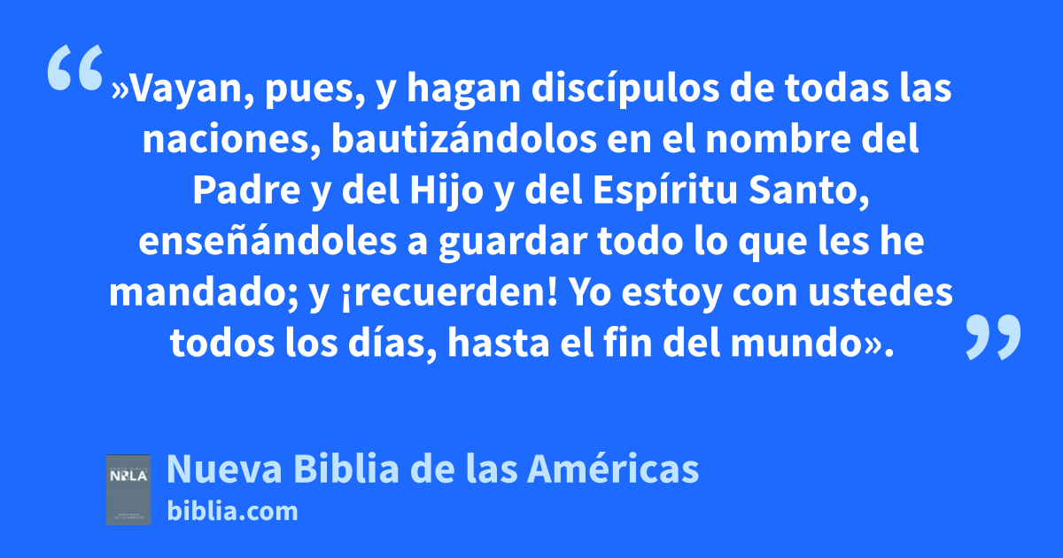 19 »Vayan, pues, y hagan discípulosa de1 todas las nacionesb, bautizándolosc en el nombre del Padre y del Hijo y del Espíritu Santo,