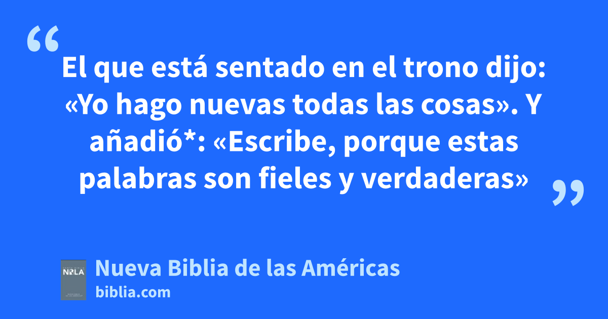 5 El que está sentado en el tronoa dijo: «Yo hago nuevas todas las cosasb». Y añadió*: «Escribe, porque estas palabras son fieles y verdaderasc»