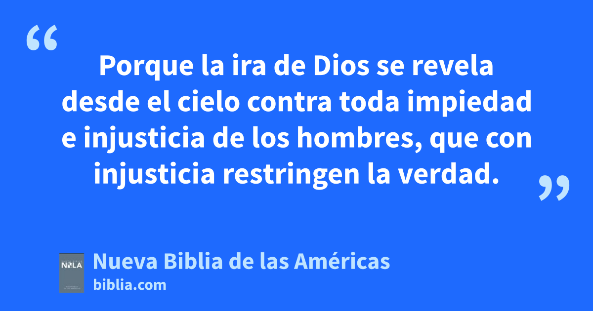 18 Porque la ira de Dios se revela desde el cielo contra toda impiedad e injusticia de los hombresa, que con1 injusticia restringenb la verdad.