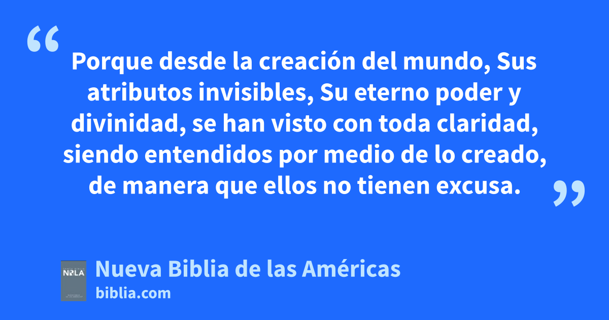 20 Porque desde la creación del mundoa, Sus atributos invisibles, Su eterno poder y divinidad, se han visto con toda claridad, siendo entendidos por medio de lo creado, de manera que ellos no tienen excusab.